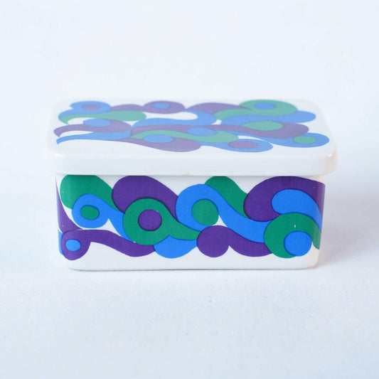 フィンランド首都のヘルシンキの生まれで、1951年にARABIAに入社し93年までの長きに渡って食器のパターンデザインを担当しています。彼女の代表的なデザインは抽”Kosmos”シリーズ、半分に切ったりんごを描いた"Fructus"などです。GOG作品と呼ばれる一点ごとに特色があるハンドペイント陶器の制作監修も務めており、独特の色彩感覚が見られます。詳細はブログ記事『北欧食器と陰翳礼讃』をご覧ください♪