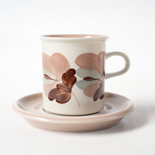 Founded in 1873, the Finnish porcelain brand ARABIA has been beloved worldwide as a representative example of Nordic vintage tableware. The "Korari" series, launched in the 1980s as part of its long history, is a charming and warm design, featuring a smoky pink floral pattern by Raija Uosikkinen against the form of a vessel designed by ARABIA's leading designer, Ulla Prokoppe. Due to its short production period of just a few years (1983-1987), it is highly prized, and its delicate beauty and sophisticated design continue to captivate Nordic vintage enthusiasts. Why not add a touch of Nordic color and story to your dining table with a rare Korari piece?