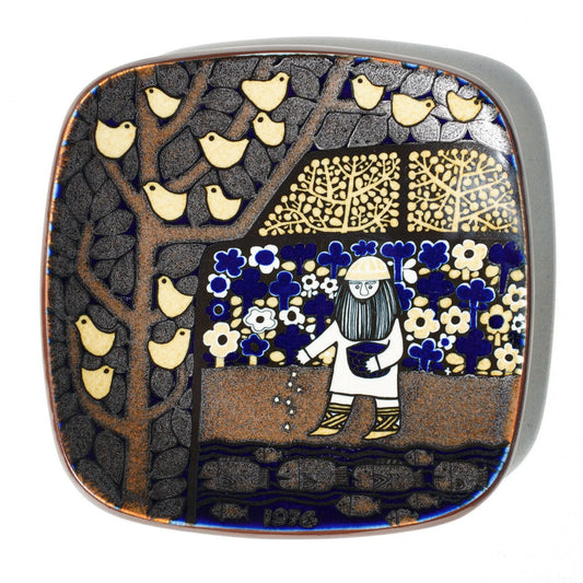Laija Uosikkinen is a designer from Holoran, Southern Finland, who began her career in 1947 after graduating from the Faculty of Arts at Aalto University. Uosikkinen worked as an exclusive designer for Arabia for 40 years, designing the Emilia series and Kalevala earplates. Particularly impressive is the partnership with Kaj Franck, in which Franck provides form design and Uosikkinen provides decorative design.