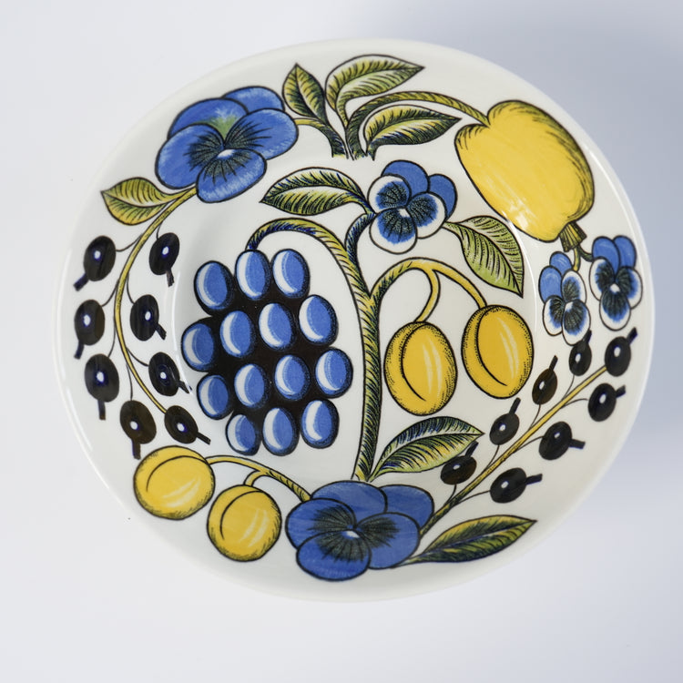 "Paratiisi" is a masterpiece created by Birger Kaipiainen, a famous designer of ARABIA. The series name means "paradise" in Finnish. After some trial and error by Kaipiainen, Paratissi was launched in 1969. Each piece of Paratissi was decorated with a richly colored print, making it one of the most elaborate and luxurious series of Arabic tableware of the time. Production ceased in 1974 due to the severe economic recession and fuel shortage caused by the oil crisis.