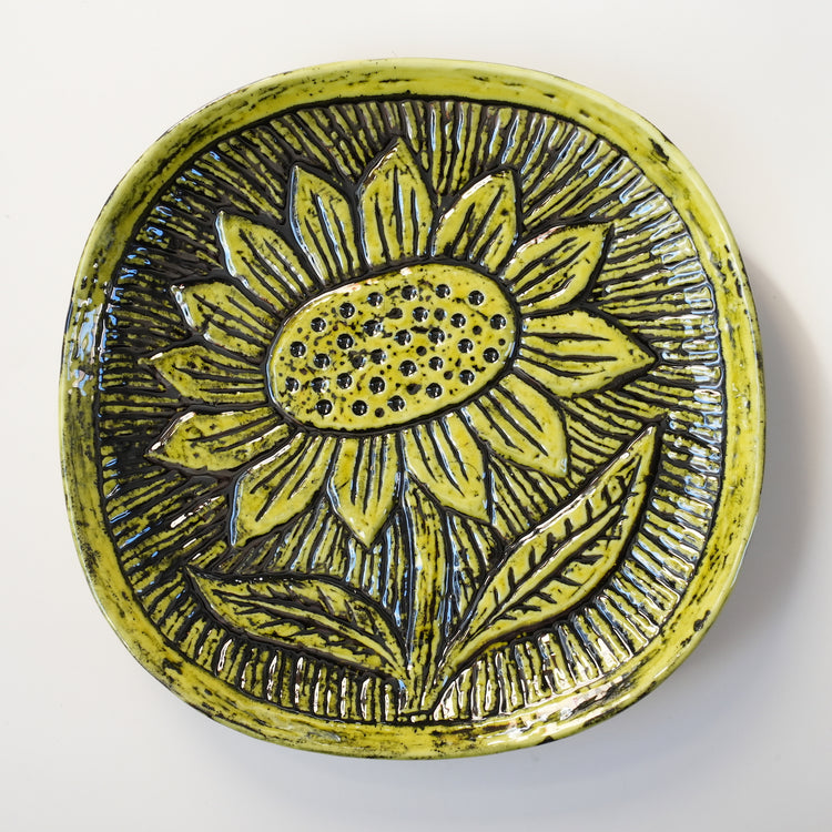 Gunnar Nylund was employed by Rorstrand until 1955, but after that he became independent and received requests from companies around the world as a freelance designer. This decorative plate is named Solros, which means "sunflower" in Swedish.