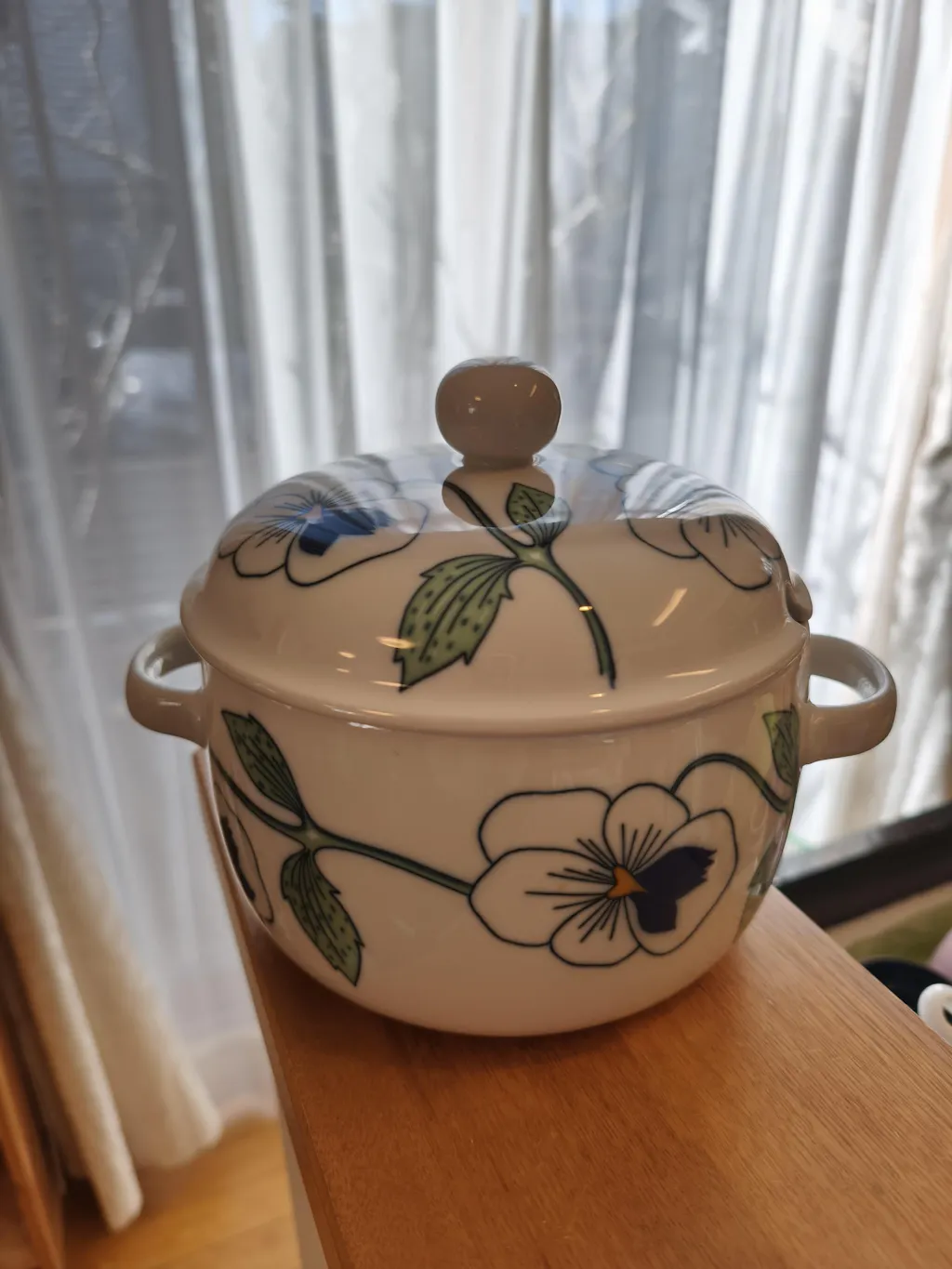 ネットストアの写真で見て、パンジーの柄と食器のデザインに一目惚れ。
