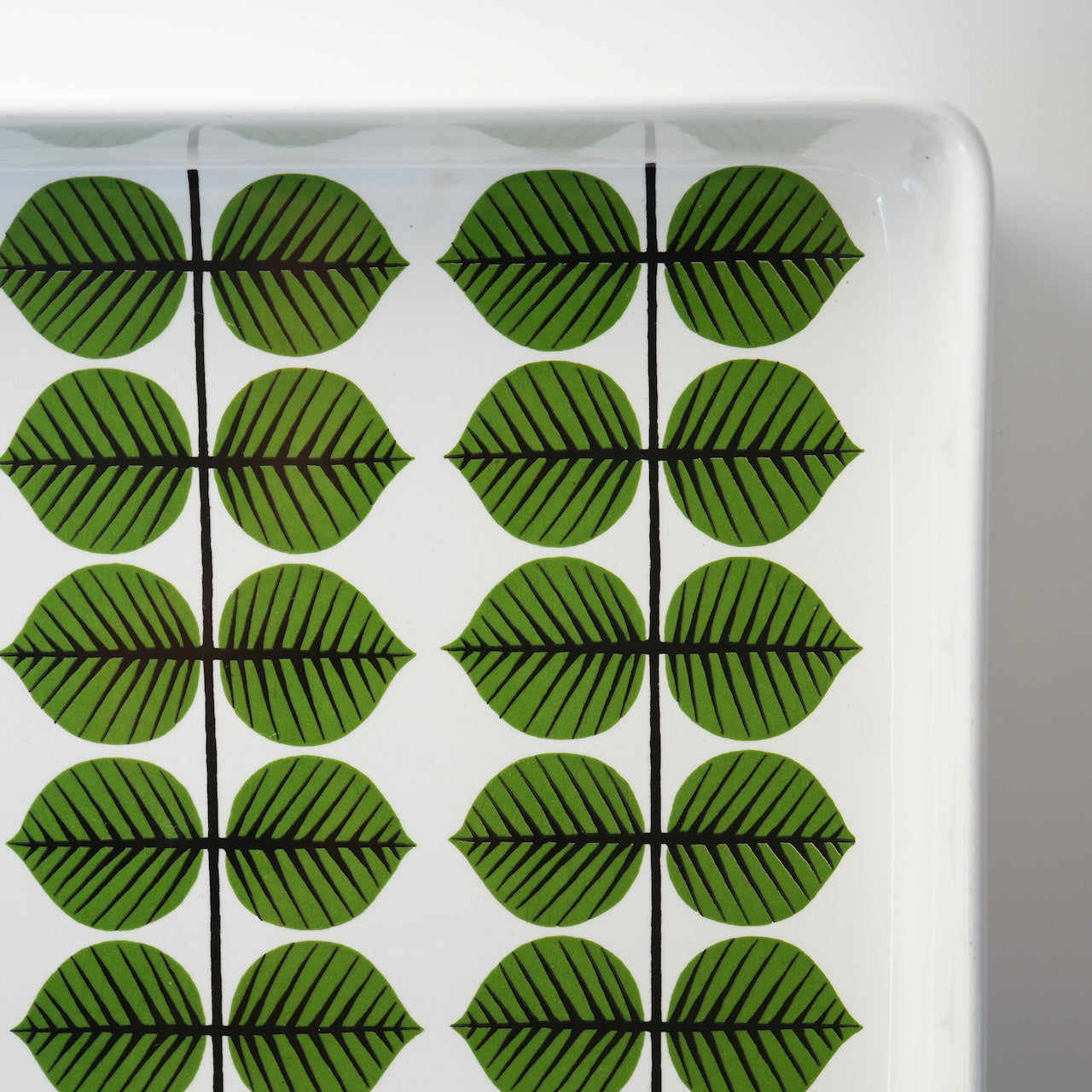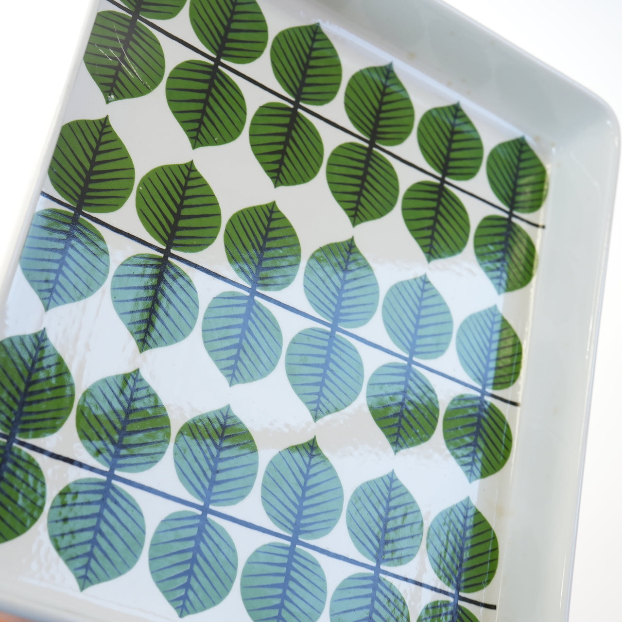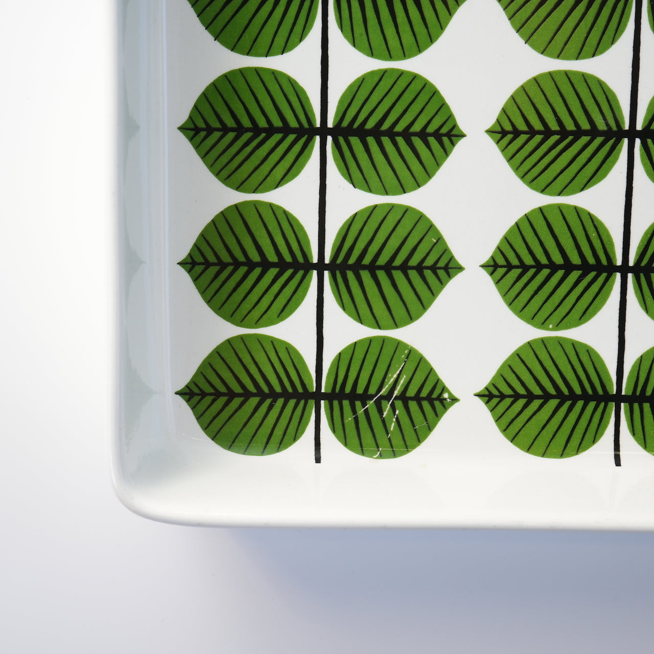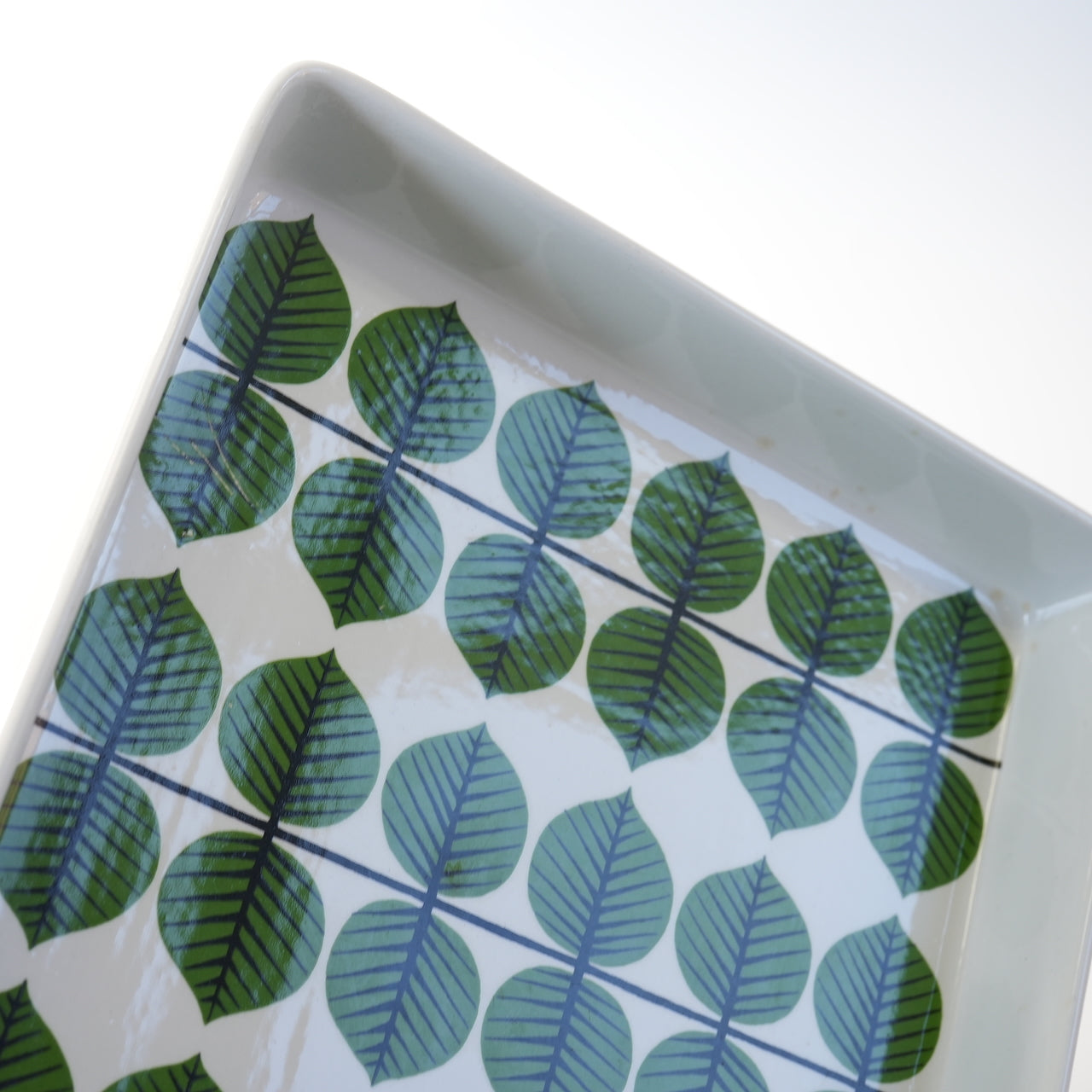 スウェーデンを代表するモダンデザインの巨匠スティグ・リンドベリ(Stig Lindberg)が1961年にデザインしたベルサ(Berså)シリーズの特大サイズのスクエアプレートです。こちらは1960〜1970年代にかけてスウェーデン国内で製造されたヴィンテージのスクエアプレートとなります。