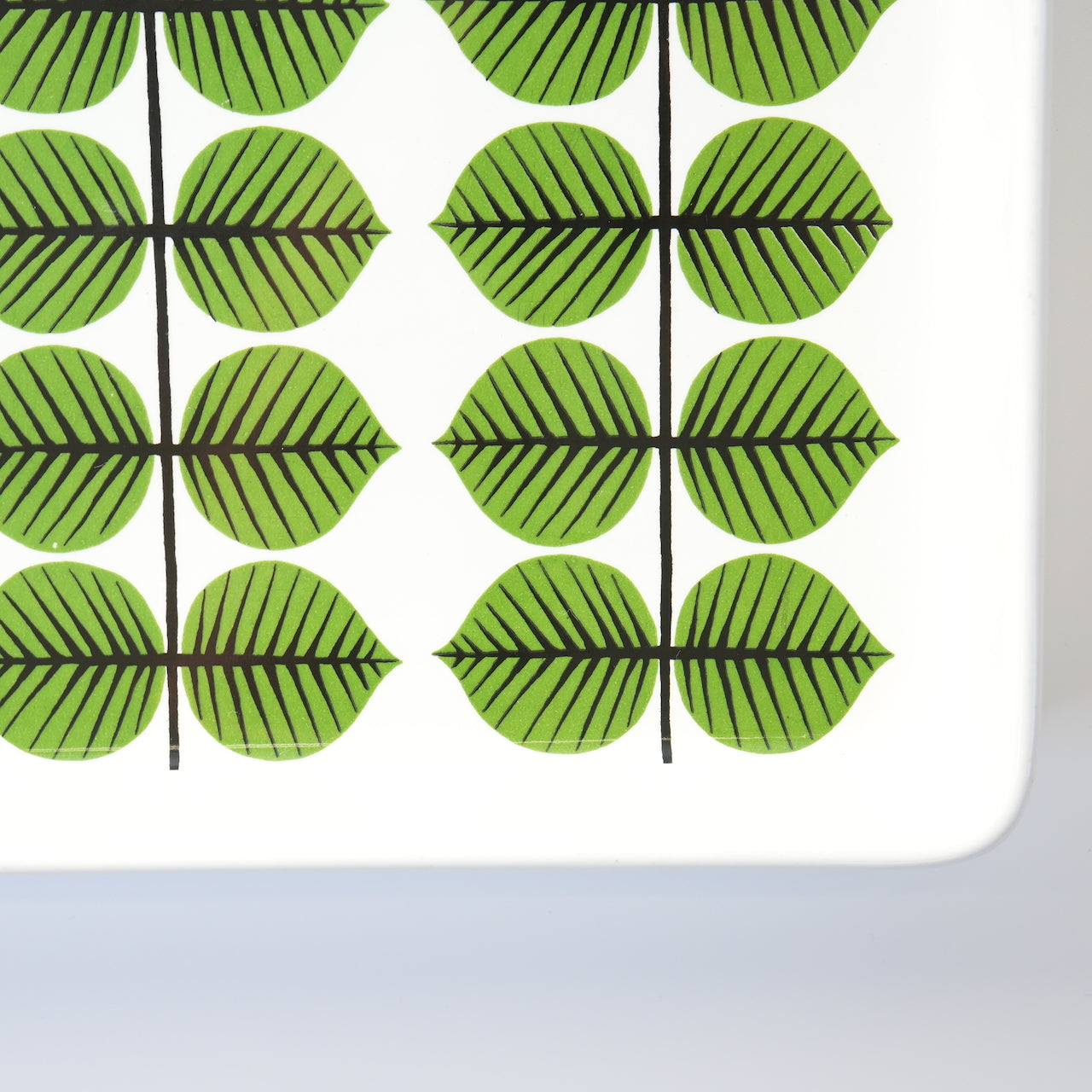 北欧は一年の半分が冬といっても過言ではない地域です。さらに寒さが厳しいだけでなく、冬場は日照時間が4、5時間程度しかありません。北欧食器の特徴はそのような冬の日であっても温かみが感じられるデザインにあふれている点です。葉っぱの青々とした緑は、食卓に新緑の彩りをもたらす色使いとなっています。Berså(ベルサ、ベルショー)とは東屋(あずまや)という意味で、庭園の一隅などで過ごす午後の涼し気なフィカを感じさせるデザインとなっています。