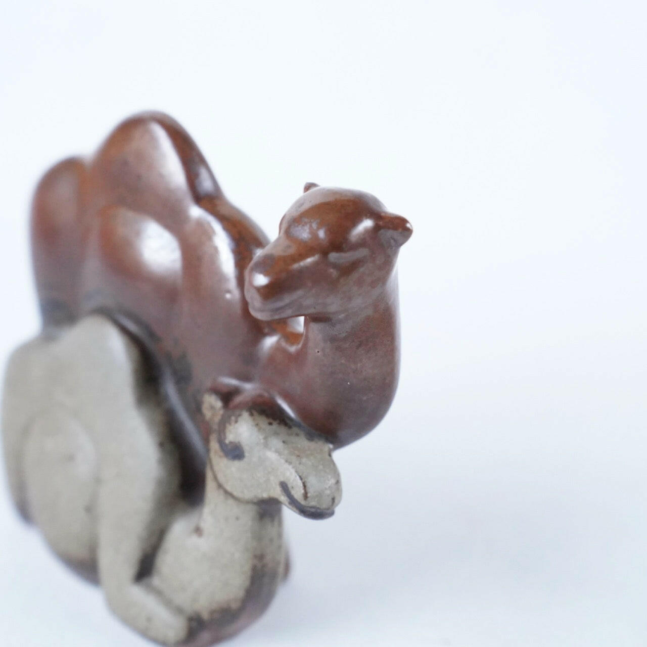 本作が生み出された当時、リサ・ラーソンは陶器像の材料研究を熱心におこなっており、こちらはシャモットと呼ばれるより土のむき出しの感じがありつつ高い耐久性も確保した新しい製造方法で作られています。