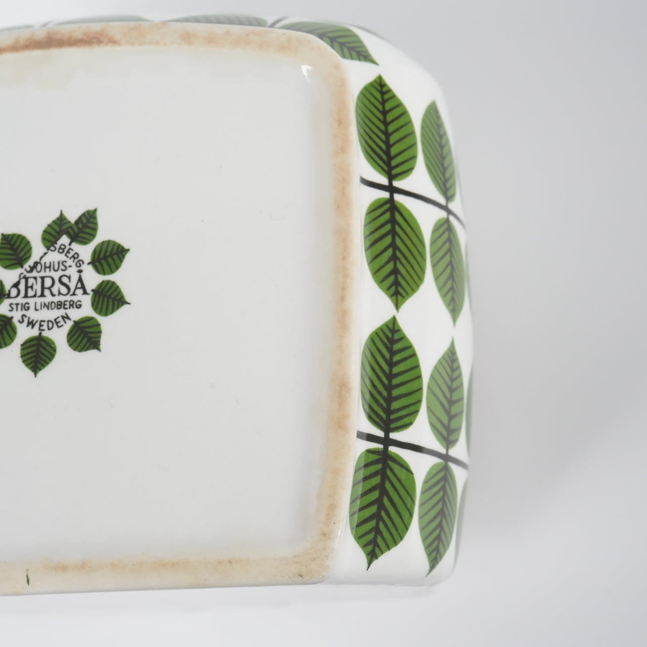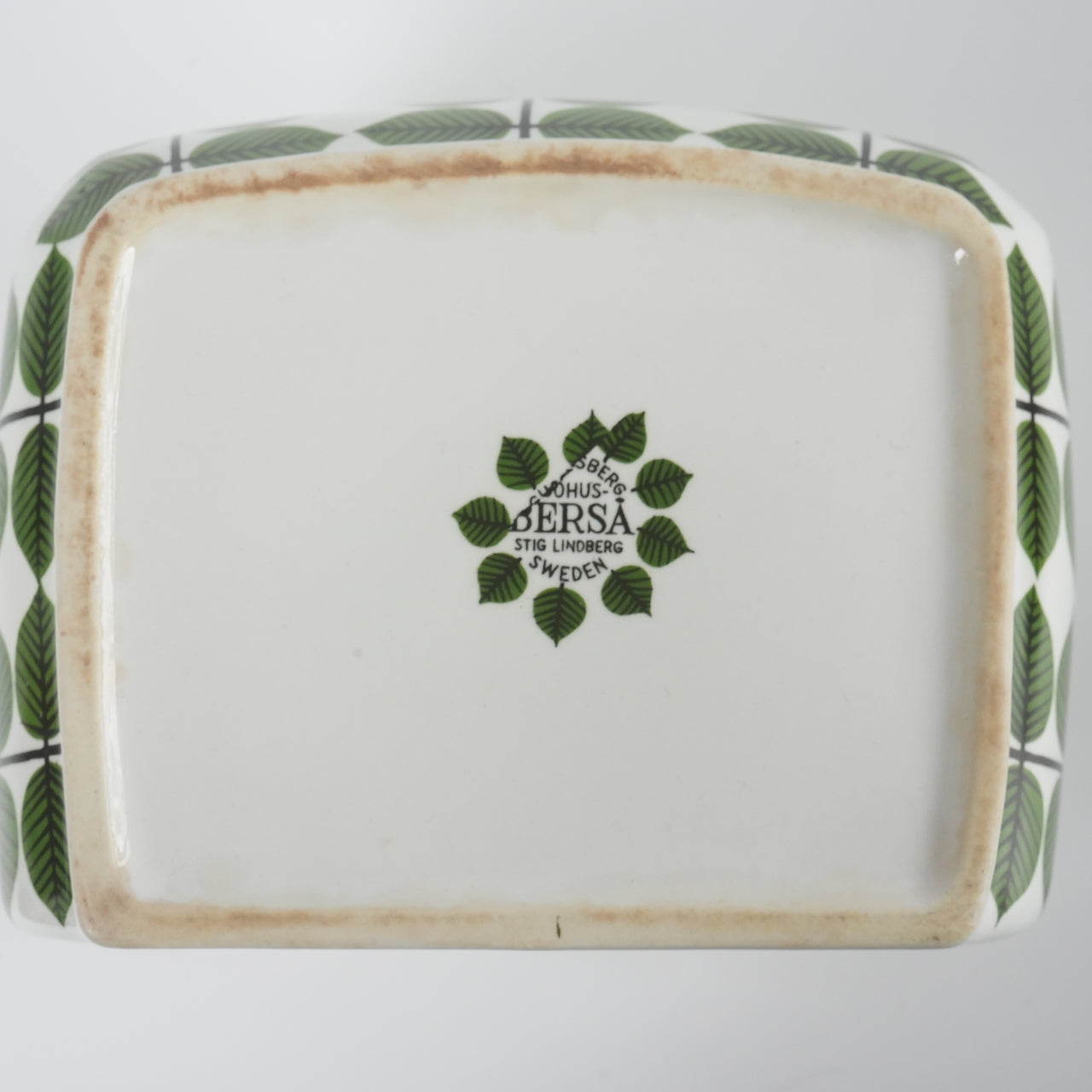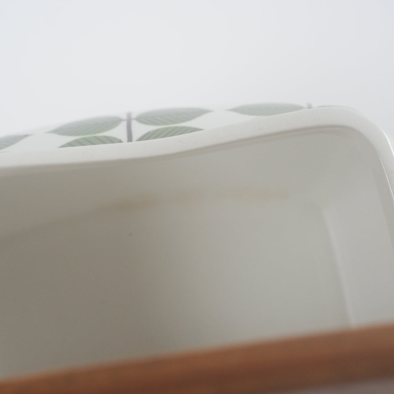 スティグ・リンドベリが手掛けた名作《ベルサ》の、極めて希少なソルトボックスです。北欧食器のアイコンともいえる、葉っぱの反復模様。食卓に置いても、棚に掛けても成立する、実用品でありながらオブジェとしても強い存在感を放ちます。