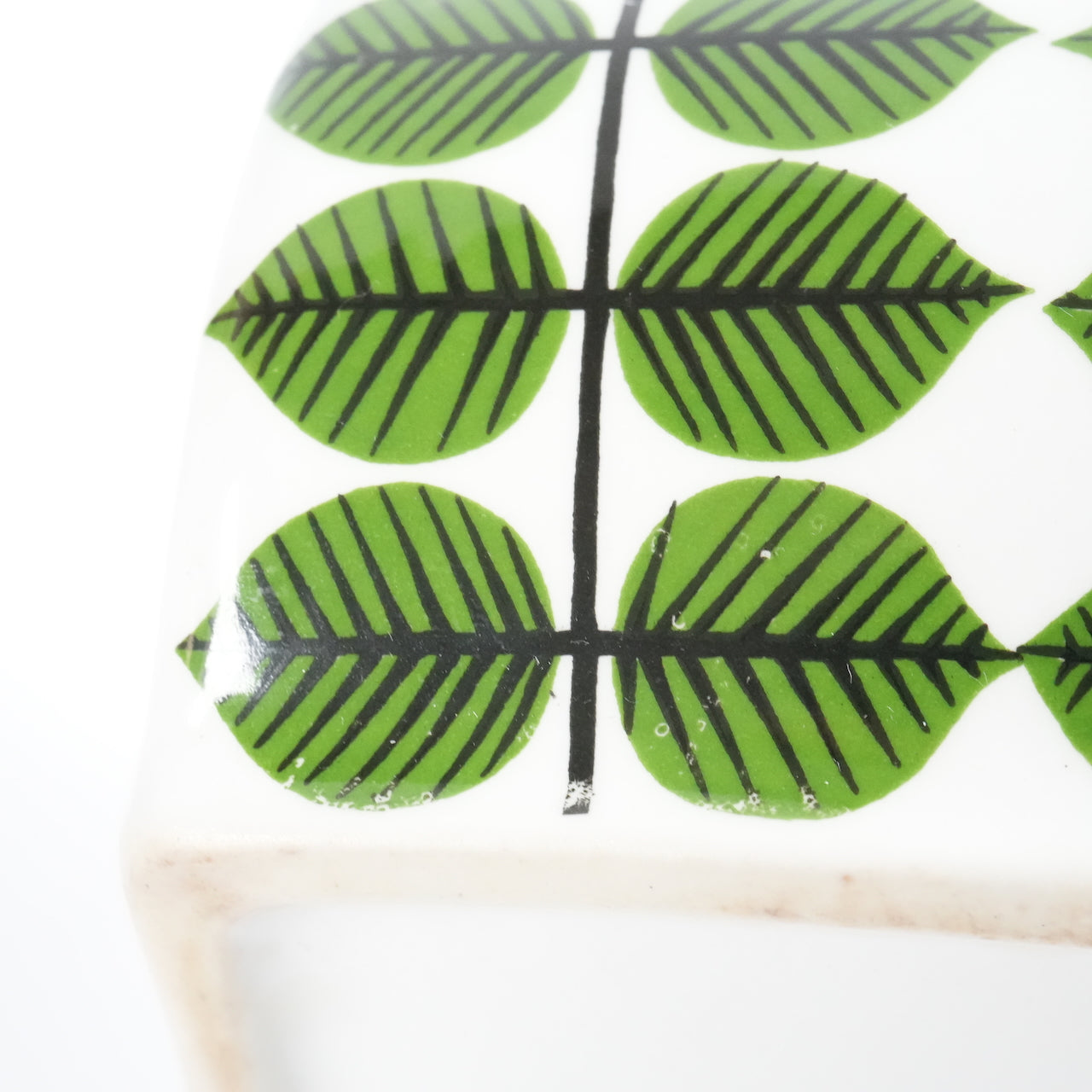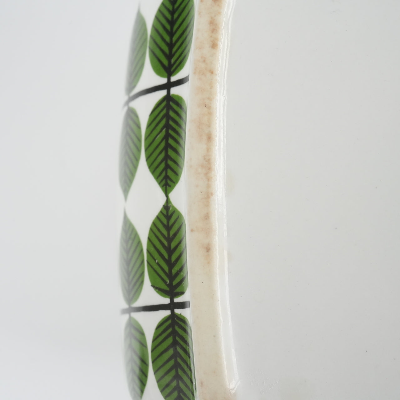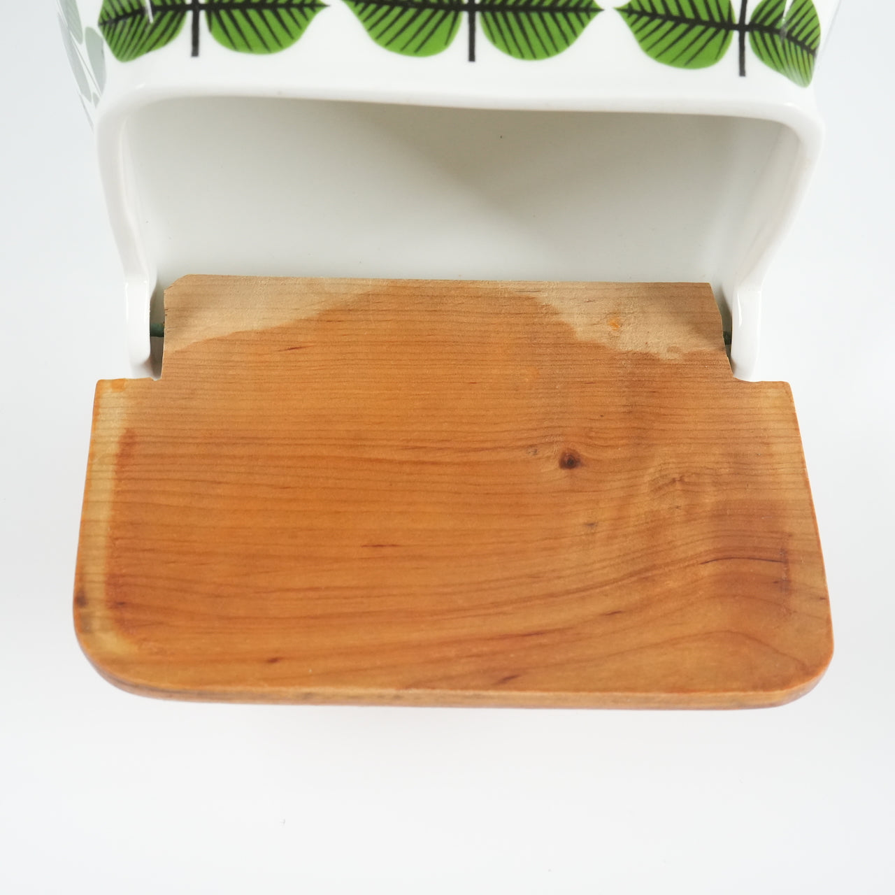スティグ・リンドベリが手掛けた名作《ベルサ》の、極めて希少なソルトボックスです。北欧食器のアイコンともいえる、葉っぱの反復模様。食卓に置いても、棚に掛けても成立する、実用品でありながらオブジェとしても強い存在感を放ちます。