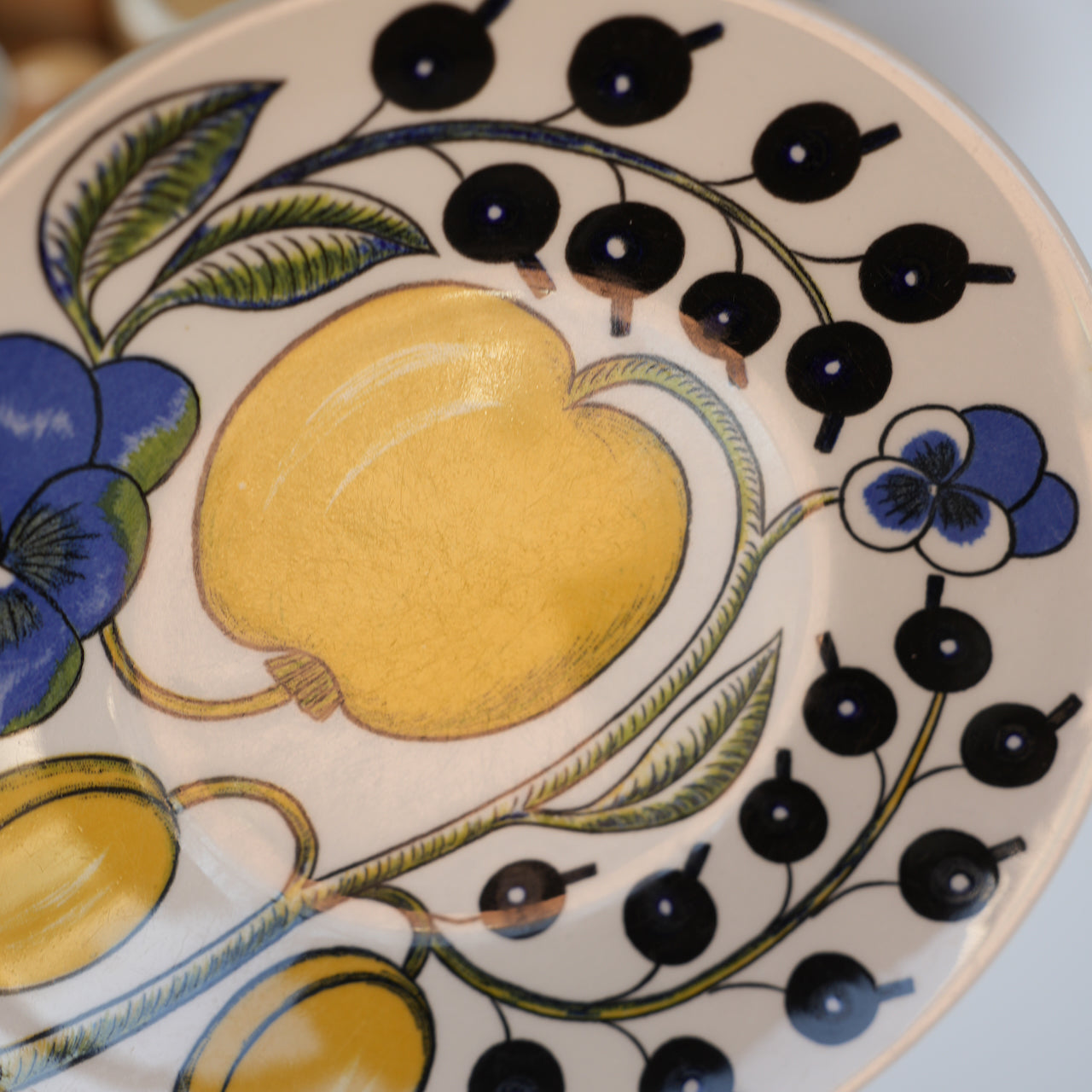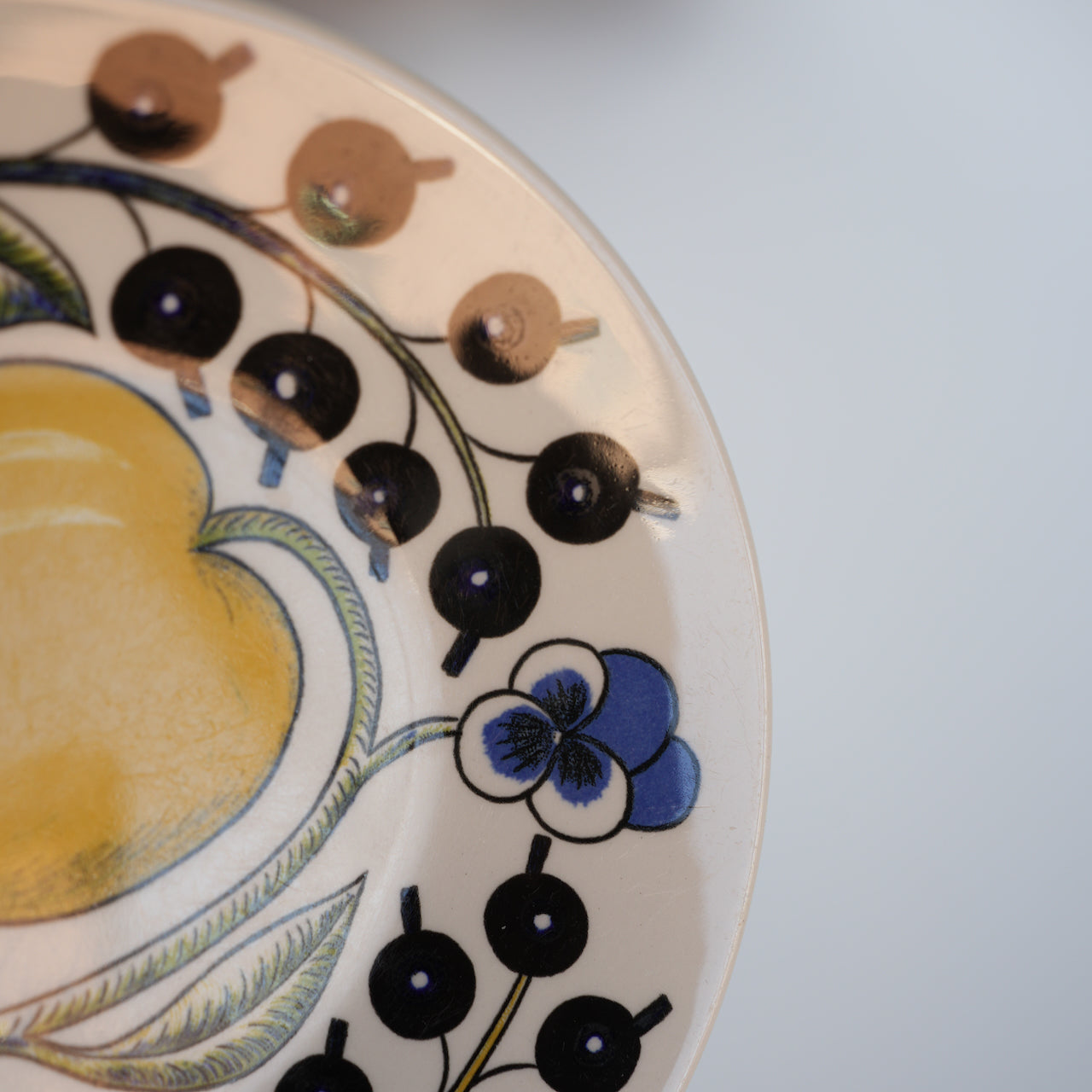 ARABIAの名デザイナー、ビルガー・カイピアイネンが生んだ名作「パラティッシ(Paratiisi)」。シリーズ名はフィンランド語で「楽園」の意味となります。カイピアイネンによるいくつかの試行錯誤を経て1969年にパラティッシは発売されました。パラティッシは一点ごとに極彩色のプリントを施されており、当時のアラビア食器のなかでも一際手間をかけた高級シリーズでした。石油危機による深刻な経済不況と燃料不足に陥った1974年には製造を中止しています。