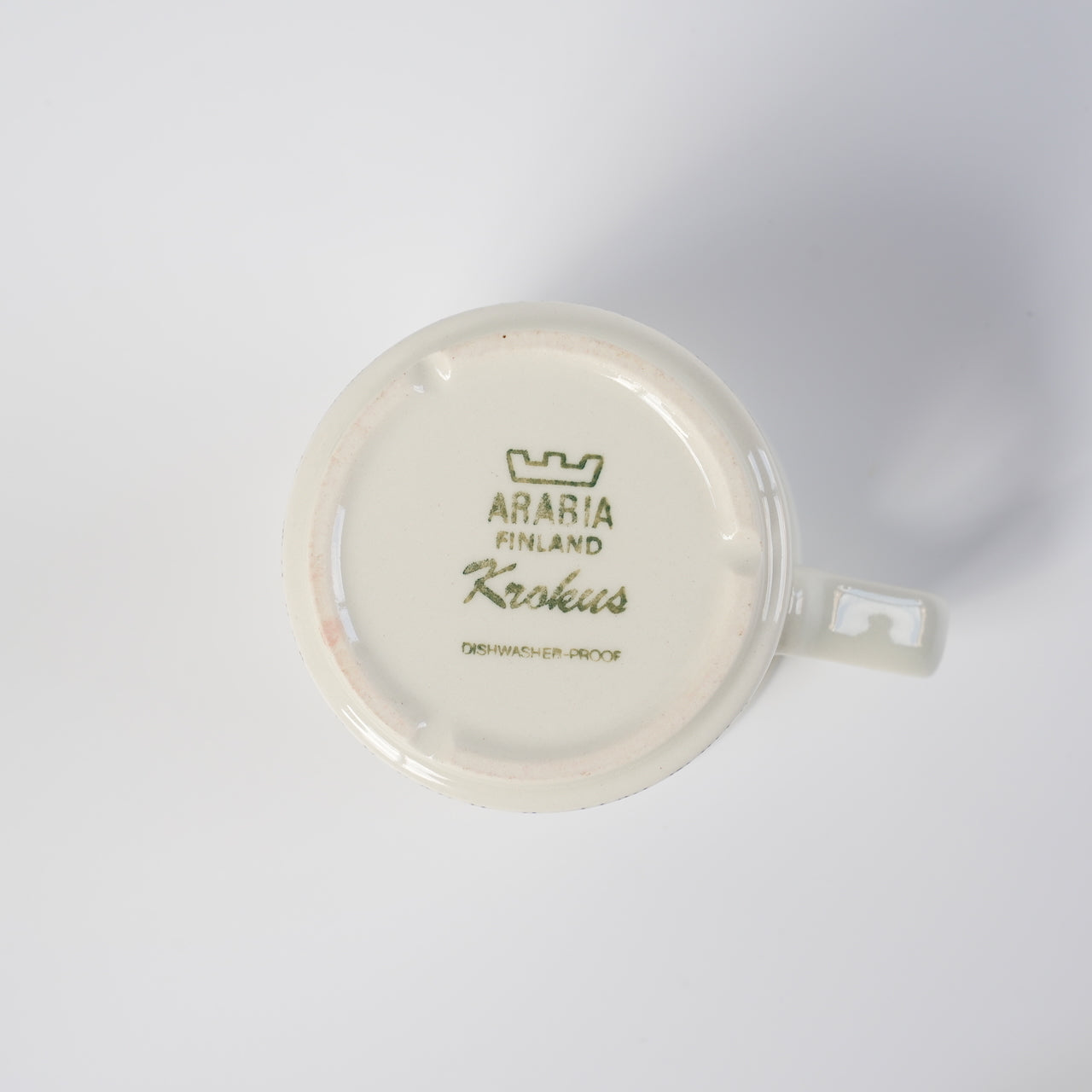 北欧フィンランドを代表する食器メーカーARABIA社の名作クロッカスのコーヒーカップ&ソーサーです。シリーズ名のクロッカスとはアヤメの花の一種です。デザインを担当したのはフローラやヴァルムやボタニカなどで知られ、自然の草花をデザインに織り込むのを得意としたエステリ・トムラです。