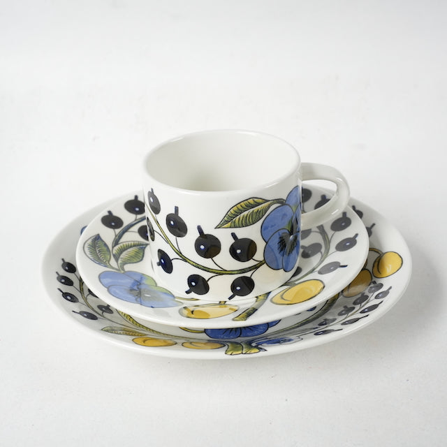 1969年頃に製造されたARABIA社の名器パラティッシの初期のティーカップ&ソーサー&ケーキ皿のトリオです。