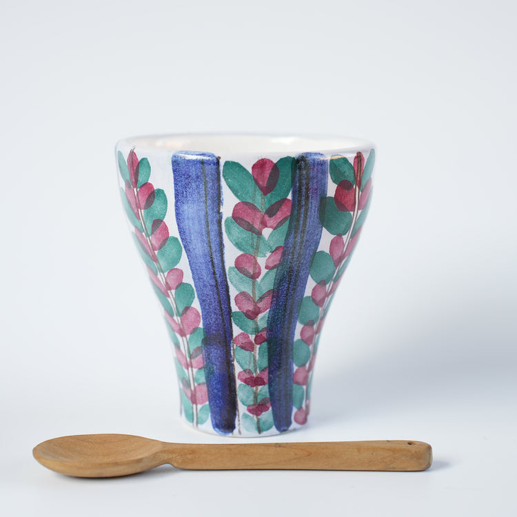 フィンランドを代表する食器メーカー ARABIA の、極めて珍しい試作品のカップです。プルプリイェンカとして知られる幻のシリーズは、1969〜70年の1年間のみ製造された希少シリーズです。本作は、製品版とは異なる試作段階で作られたアトリエ作品とみられます。