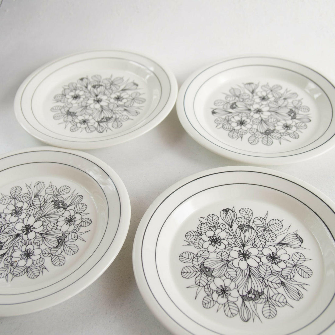 フィンランドを代表する食器メーカーARABIA社の幻の名作クロッカスです。クロッカスとはアヤメ科の植物の一種です。クロッカスのプレートには白黒版、カラー版、グレーリム版の3種類がありますが、こちらは白黒版となります。クロッカスは1978~79年のわずか2年間しか製造されなかったシリーズです。近年ではマグカップ、ボウル、17cmプレートの復刻版が製造されました。