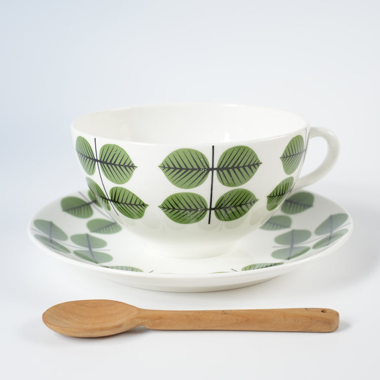 北欧は一年の半分が冬といっても過言ではない地域です。さらに寒さが厳しいだけでなく、冬場は日照時間が4、5時間程度しかありません。北欧食器の特徴はそのような冬の日であっても温かみが感じられるデザインにあふれている点です。葉っぱの青々とした緑は、食卓に新緑の彩りをもたらす色使いとなっています。Berså(ベルサ、ベルショー)とは東屋(あずまや)という意味で、庭園の一隅などで過ごす午後の涼し気なフィカを感じさせるデザインとなっています。