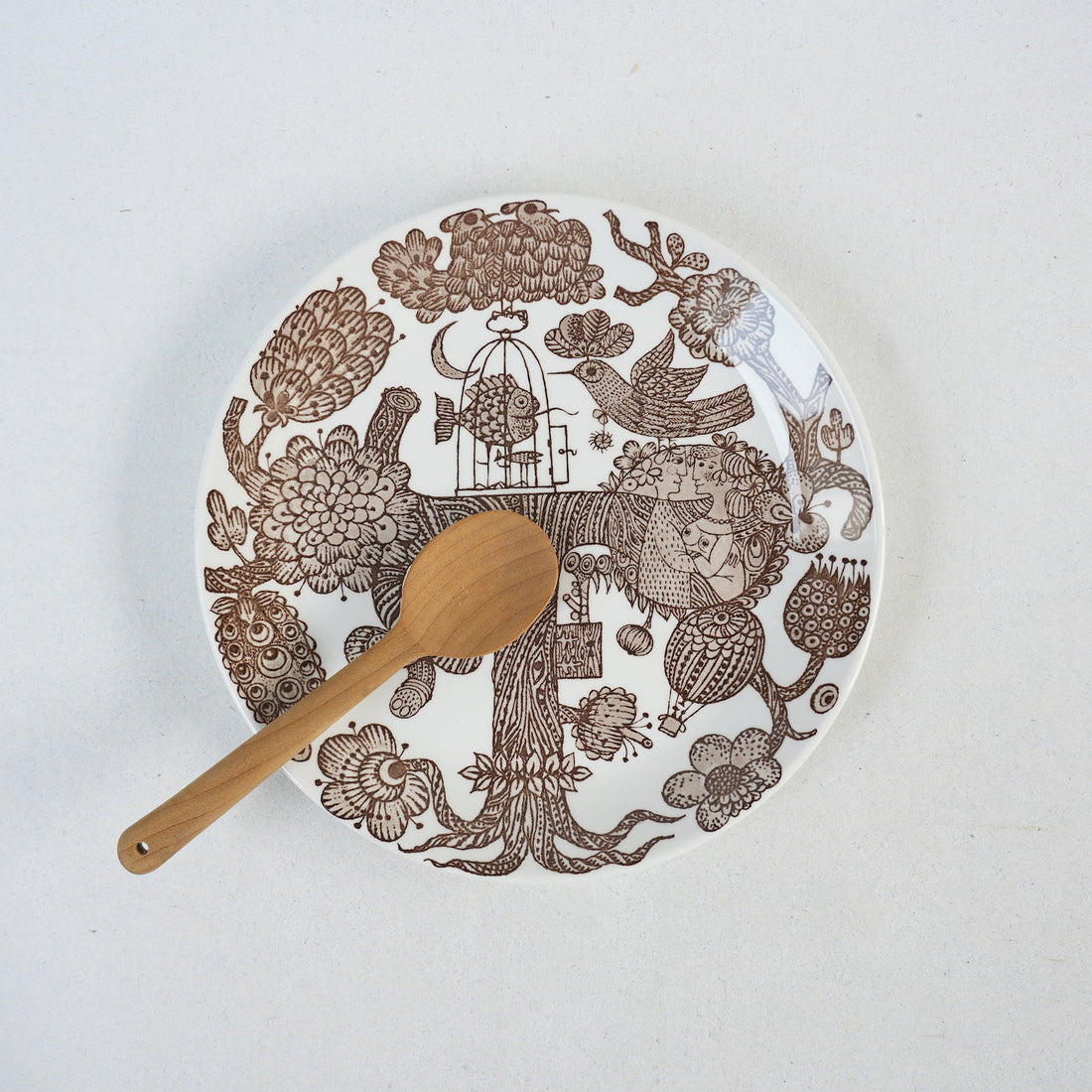 エロスは独特な世界観を淡いブラウンという一色のタッチだけで描いた、非常に作り込みが緻密なプレートです。エロスにはケーキ皿、21cmの中サイズの皿、最大サイズの25cmの大皿があります。こちらは比較的珍しいケーキ皿となります。