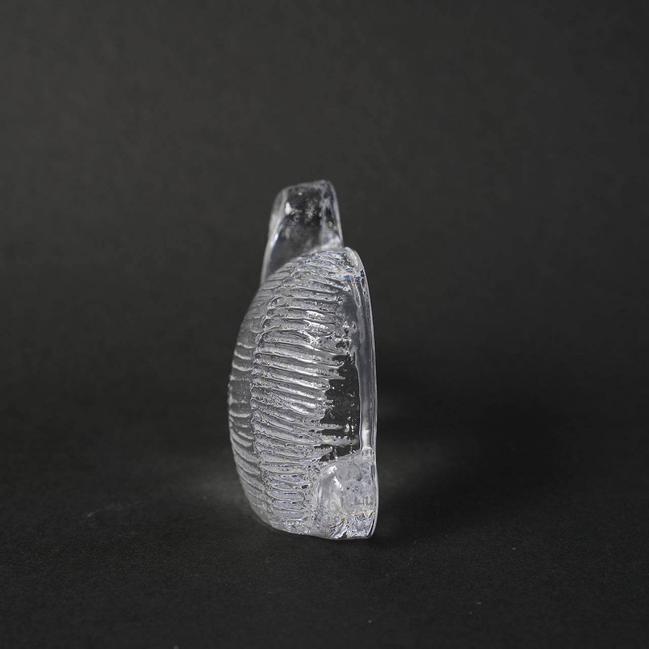 リサ・ラーソンが1980年代にデザインしたクリスタルガラス製の置物です。リサ・ラーソンは1980年に古巣のグスタフスベリ社を退社した後、フリーランスのデザイナーとしてヨーロッパ各国の企業からの依頼を受けていました。こちらはフリーの時期にスウェーデン国内のローヤルクローナというガラスメーカーから依頼され制作したガラスのオブジェとなります。