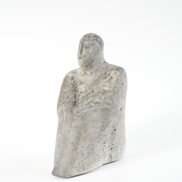 リサ・ラーソンが2012年に制作したコンクリート製の置物です。リサ・ラーソンはよく知られる猫作品やライオン像など大衆的な作品を世に送り出した一方で、陶芸家としての側面もありました。陶芸家としての側面は決して愛らしさでは語り尽くせないものがあります。真に迫った陶芸家としての作品には陰鬱や不気味さすらあります。本作はリサ・ラーソンが一点もの(ユニークピース)として制作したコンクリート製の男性の像です。