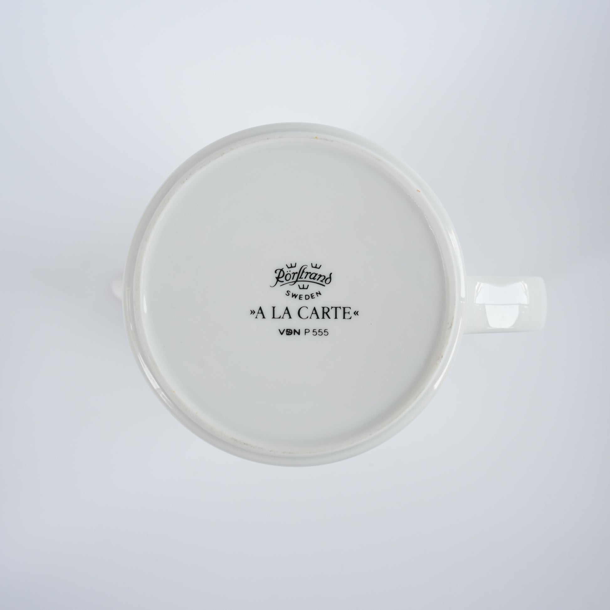 ロールストランドが1980年代に製造した「ア・ラ・カルト(A La Carte)」シリーズのピッチャーです。シグネ・ペション=メリンがデザインしたホワイトの無地ボーンチャイナで、容量約880mlの大ぶりなサイズは当時テーブルで水やジュースを注ぐためにデザインされました。