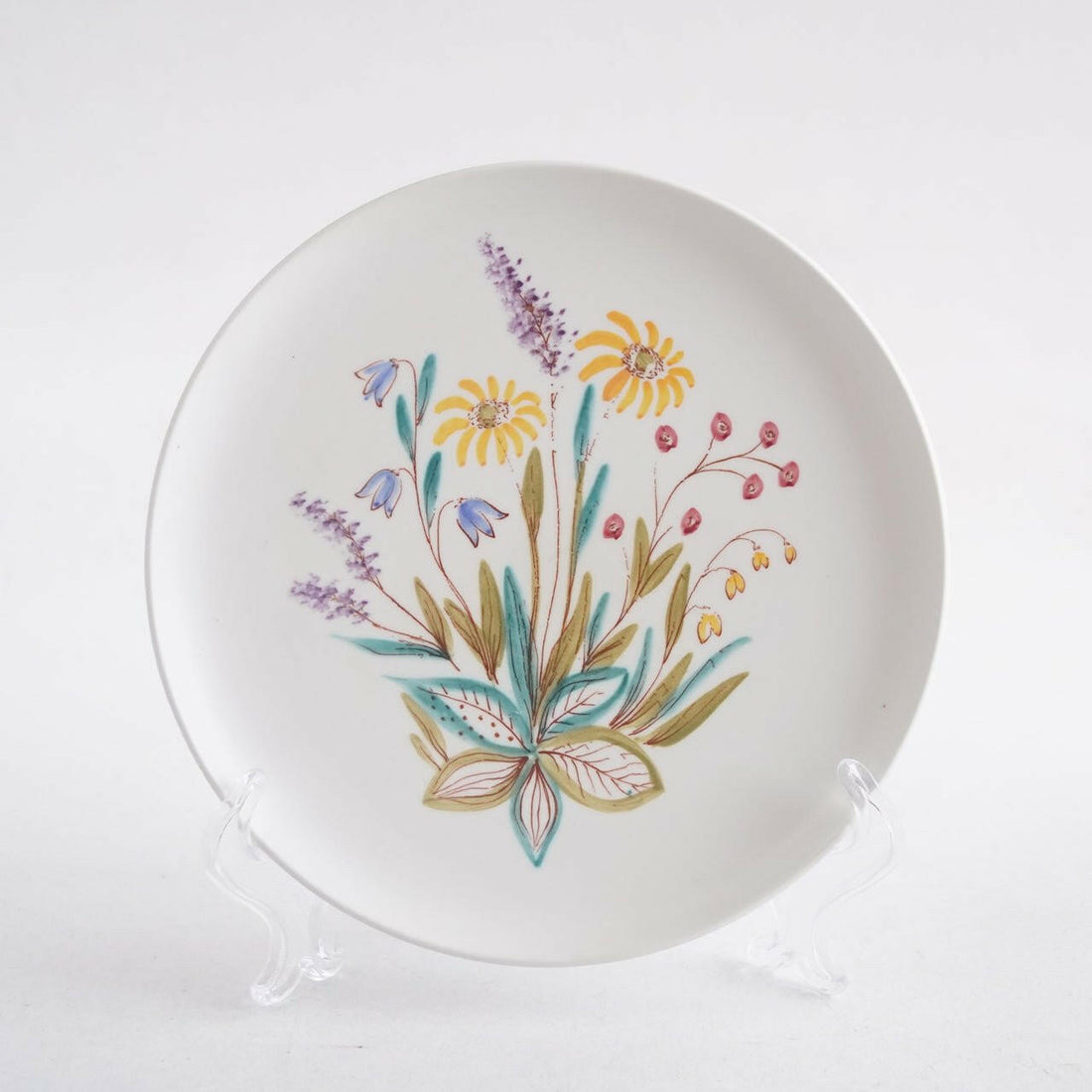 スウェーデンの代表的な陶器メーカー、ロールストランド社が1940年代に製造したビルダ・ブロッモーというシリーズです。ビルダ・ブロッモーとはスウェーデン語で「野に咲く花」を意味し、このシリーズでは草原に咲く多種多様な草花がハンドペイントで描かれています。乳白色の下地に自由な筆致で伸び伸びと描かれた草花が映えており、職人が一つひとつの柄を丁寧に描いていた古き良き時代が感じられます。