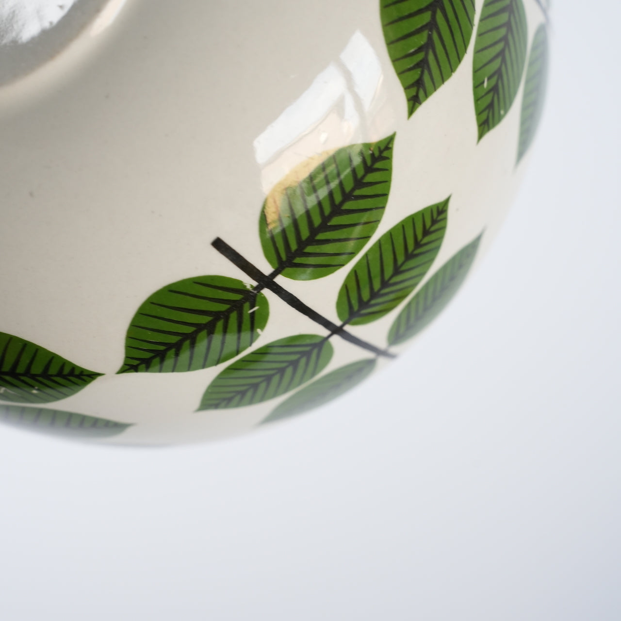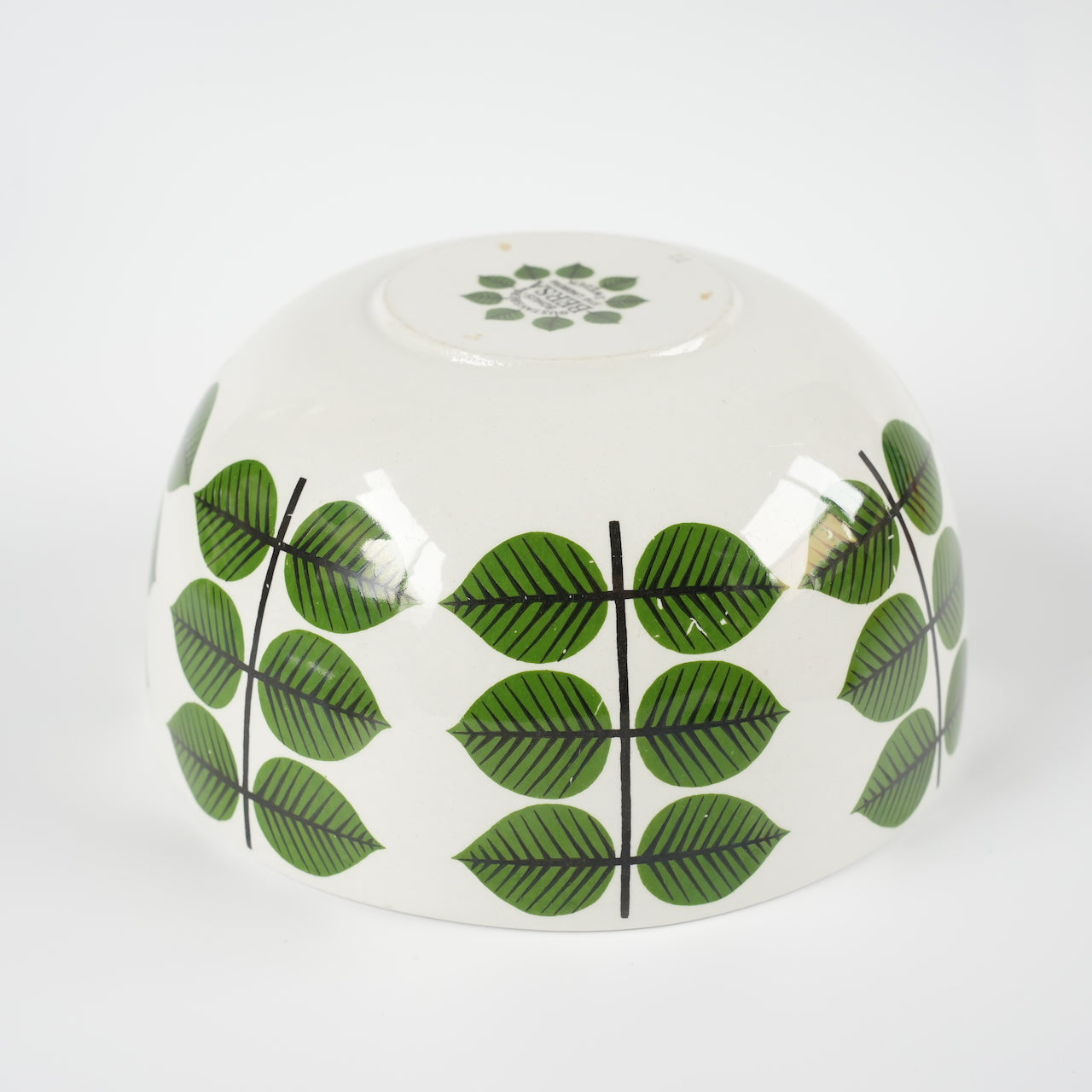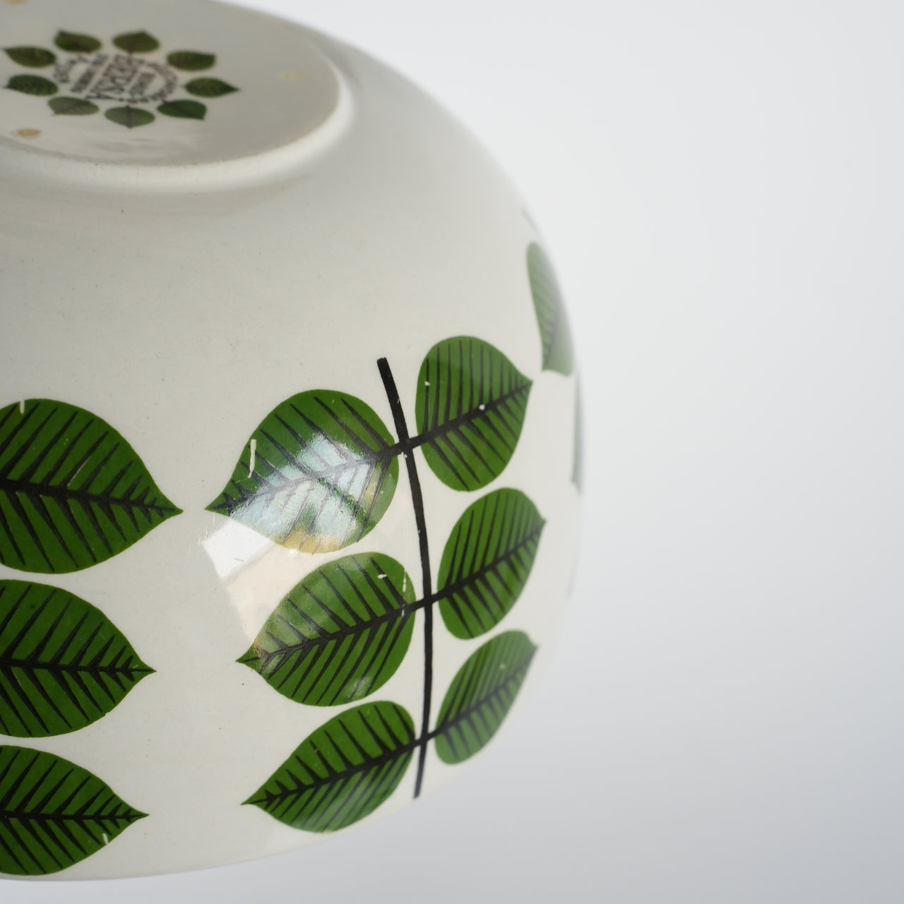 大多数老式Versa碗都是圆柱形的,因此这种碗状碗非常罕见。市面上也有仿制品,但都是圆形的,而且只在碗内作画,外侧没有叶子图案。碗状碗有三种尺寸:大号、中号和小号(分别为17.5厘米、15厘米和12厘米),这款是中号,直径15厘米。