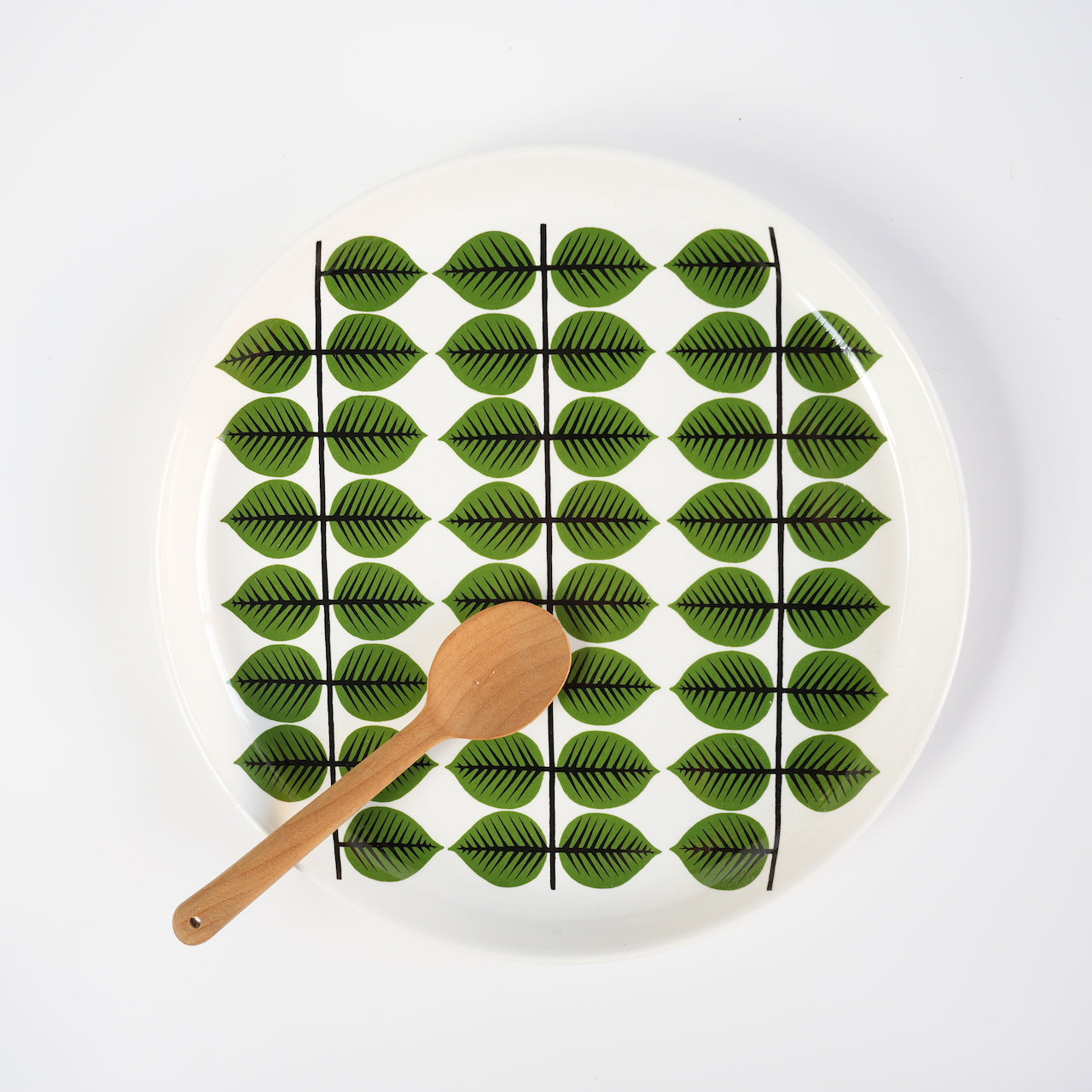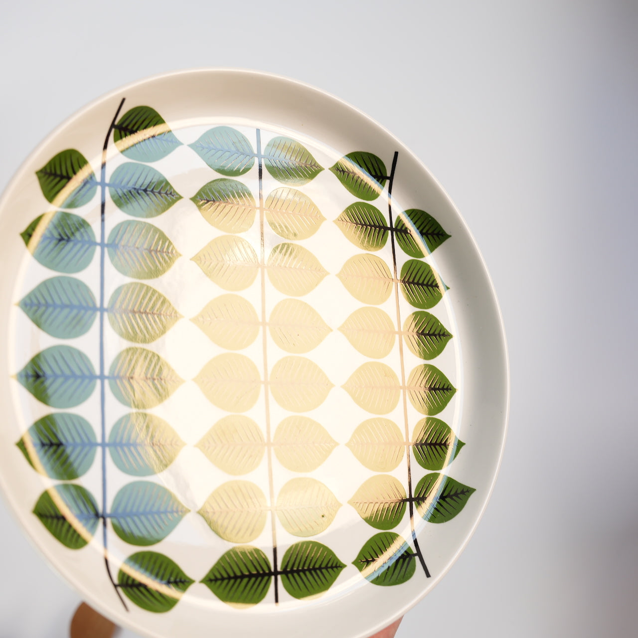 Versa 餐盘也有复刻版,但主要区别在于叶片图案的翠绿色调。复刻版的绿色比原版更浅。原版餐盘的另一个特点是边缘略微凸起。而复刻版则呈碗状,从中心向边缘逐渐变圆。