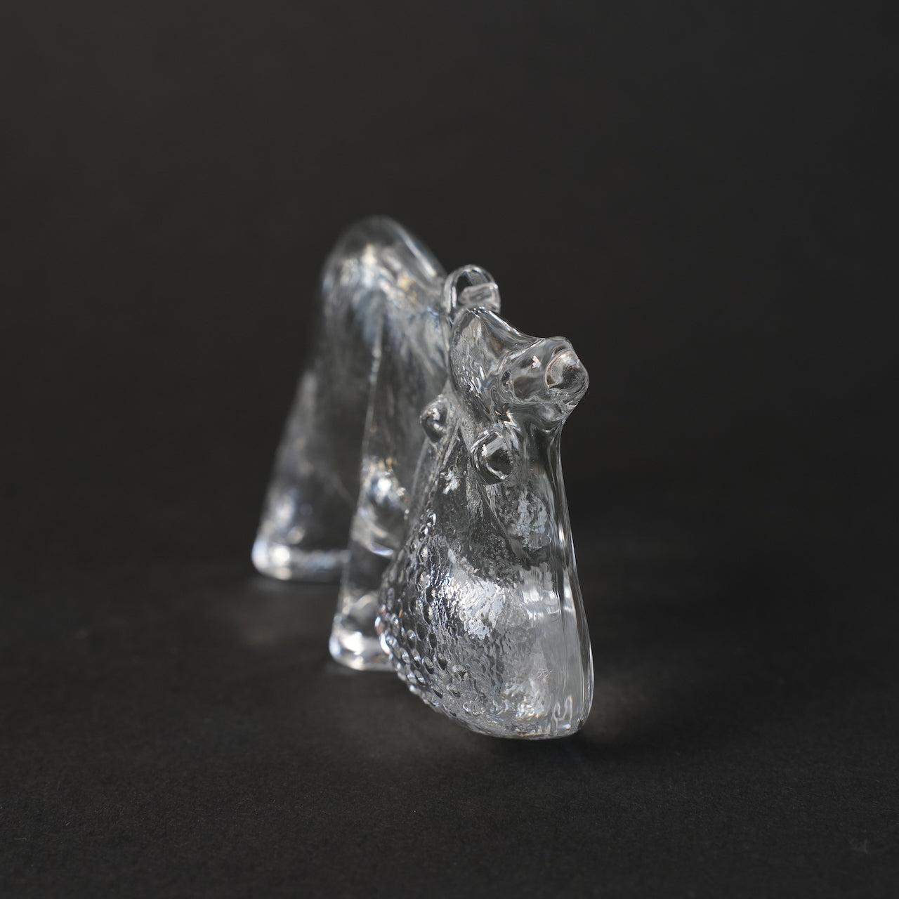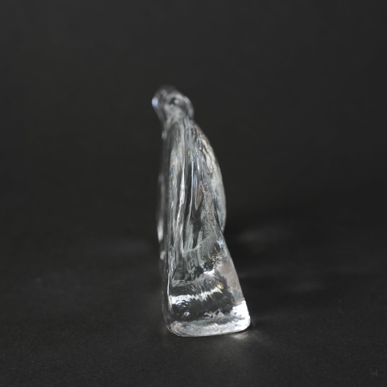 光线透过高度透明的水晶玻璃,在内部汇聚,随着角度的变化,投射出缓缓变幻的光影。鼻子和嘴巴的立体质感,以及腿部的立体感,都为简洁的设计增添了触感丰富的雕塑感,使其成为任何空间中的点睛之笔。轮廓在黑色背景的衬托下格外醒目,玻璃的厚度和纹理变化在自然光下呈现出不同的视觉效果,因此,这件作品会随着摆放位置的不同而呈现出不同的面貌。