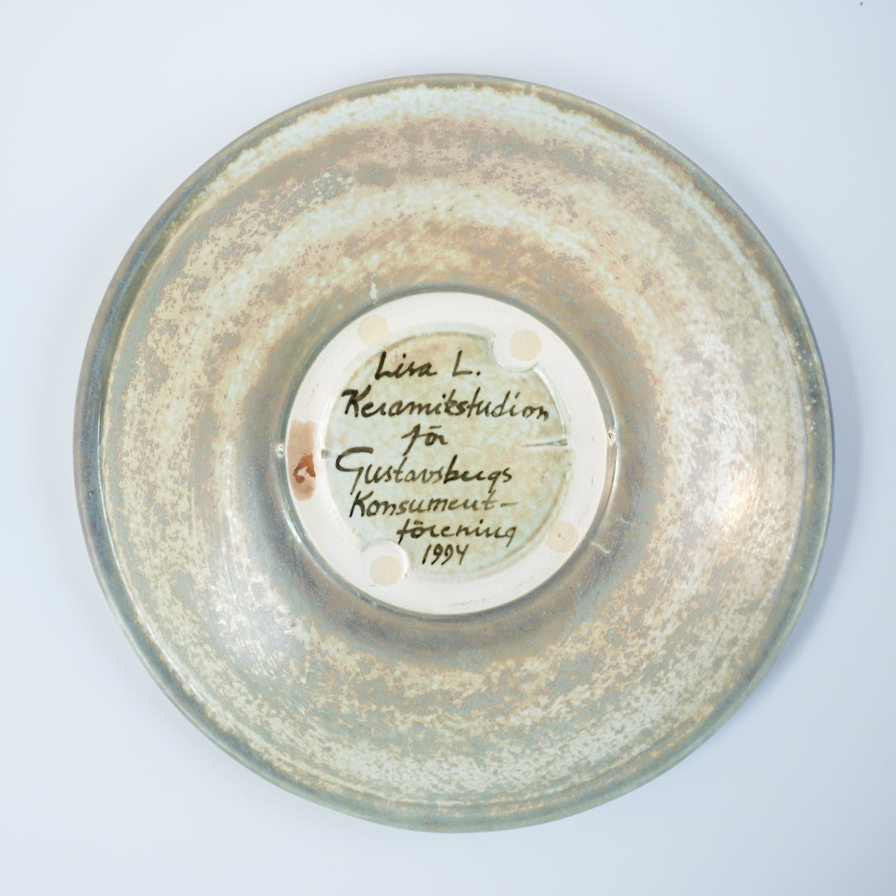 丽莎·拉尔森于 1994 年创立了瑞典消费者协会。这是应瑞典消费者合作社(Konsumentföreningen)的要求,小批量生产的限量版餐盘。该合作社相当于日本的消费者合作社。丽莎·拉尔森受委托设计了这款餐盘,以纪念瑞典首都斯德哥尔摩东部古斯塔夫斯贝里地区当地消费者合作社成立75周年。这件作品是一件稀有物品,不对外出售,而是分发给合作社成员。