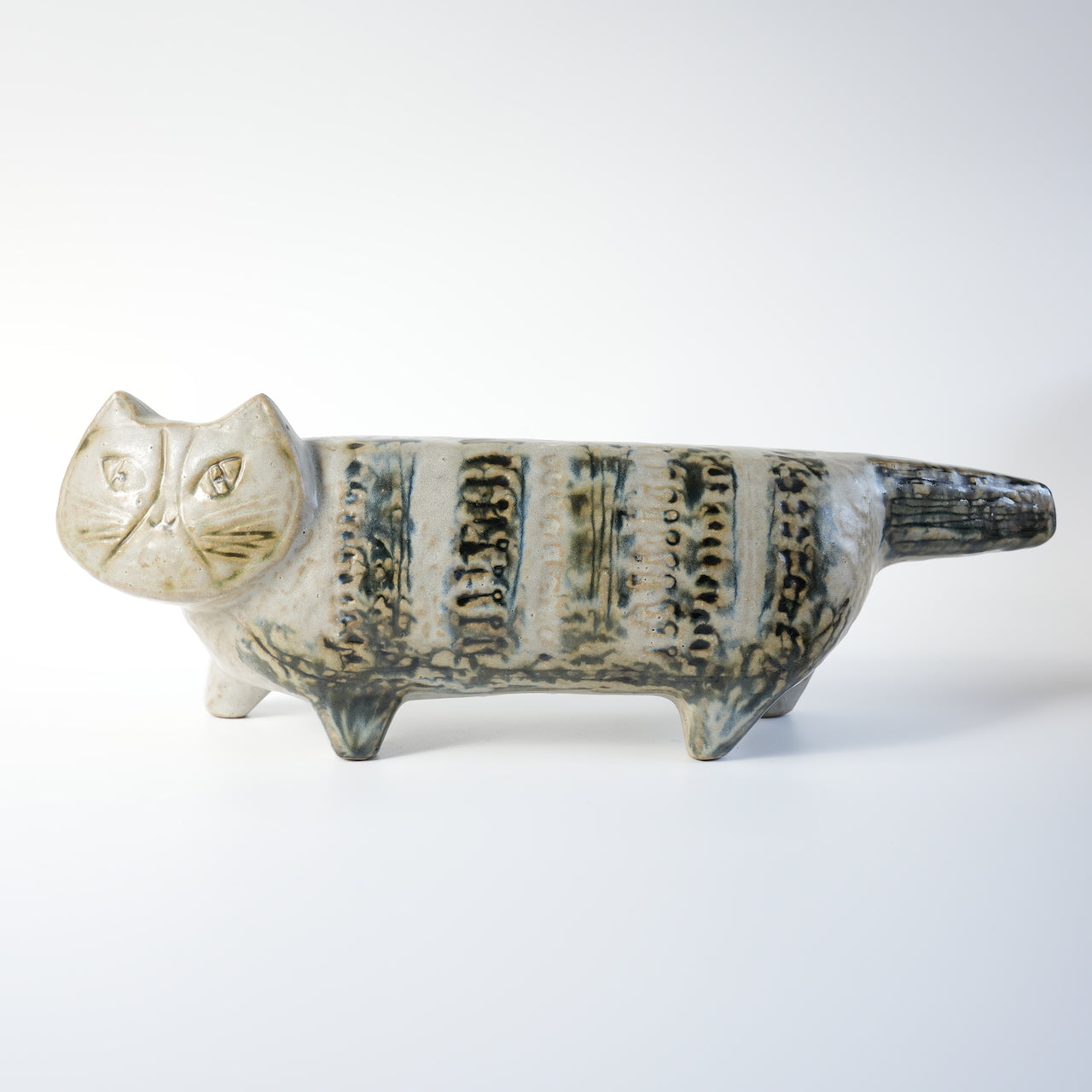 这尊猫(Katt)陶瓷雕像属于 Stora Zoo 系列,由 Lisa Larson 于 1958 年为 Gustavsberg 设计。它是 Lisa Larson 作为陶瓷艺术家首次亮相时创作的最早作品之一。