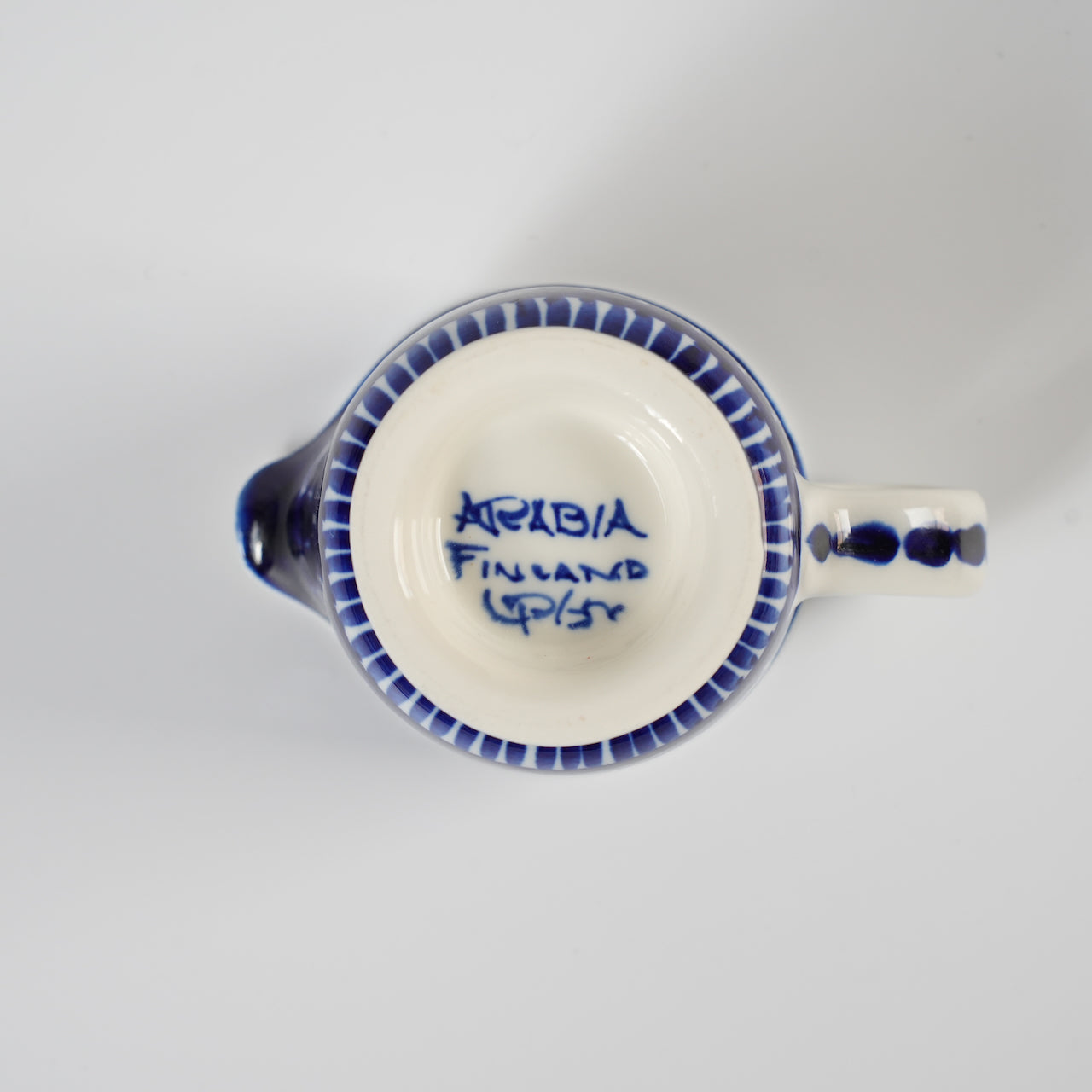 ARABIA的代名词手绘餐具瓦伦西亚奶精。 Valencia 系列包括茶杯、汤碗、切菜板、榨汁机、水罐、茶壶和其他装饰餐桌的器具。这是该系列中比较少见的一款奶精。