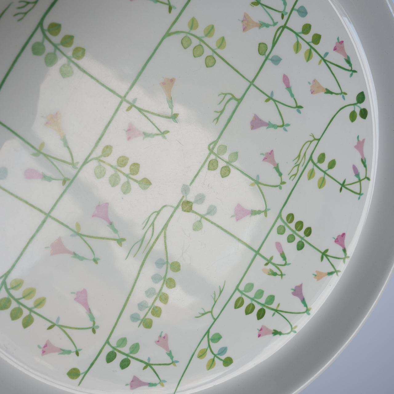这只盘子是瑞典历史悠久的餐具制造商古斯塔夫斯贝里(Gustavsberg)出品的林奈(Linnea)系列产品之一。林奈(Linnea)指的是卡尔·冯·林奈(Carl von Linnaeus),这位瑞典植物分类学的创始人。他发明了二名法,将植物名称分为属名和种名,并以拉丁文书写。这只纪念盘是为了纪念林奈而制作的,即使在他的故乡瑞典,也十分罕见。该系列共有三种尺寸,这只盘子是最大的,直径24厘米。盘子背面的底款上印有一首赞颂林奈的诗。